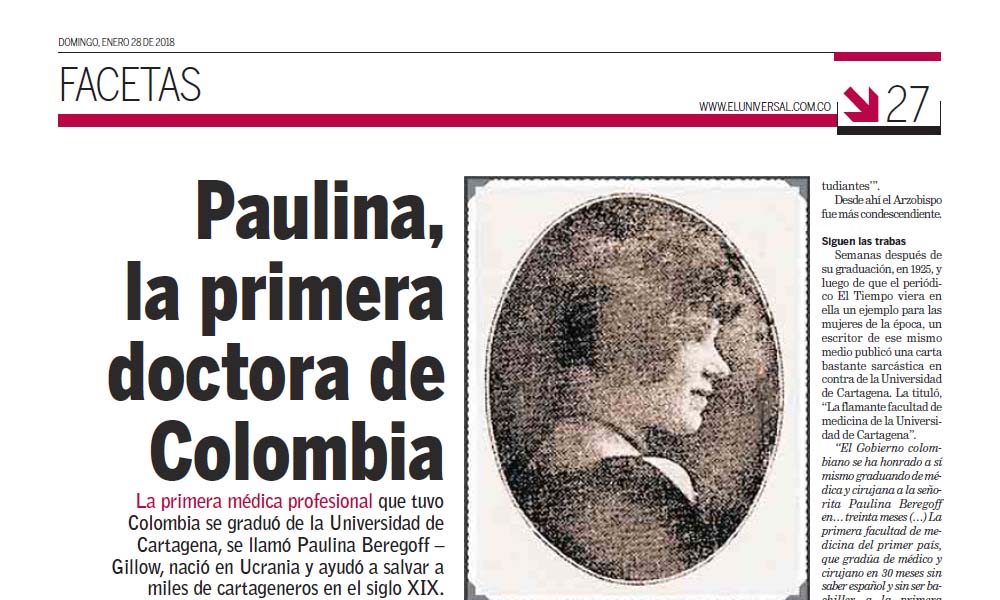 Facetas El Universal. Paulina Beregoff cambió la historia médica de Cartagena