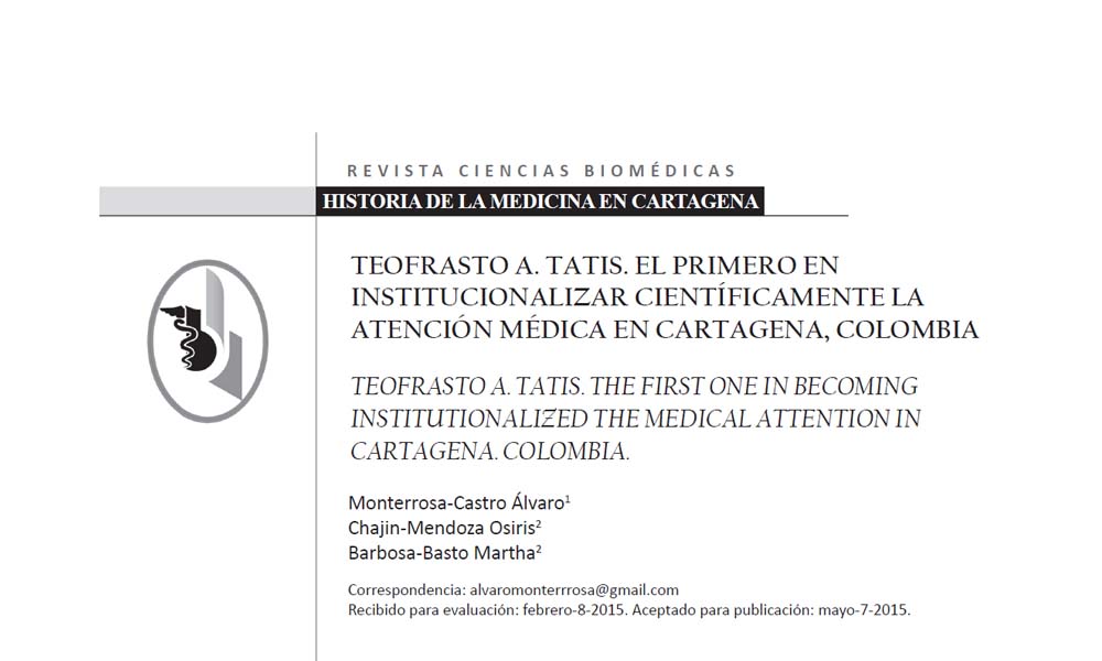 TEOFRASTO A. TATIS. EL PRIMERO EN INSTITUCIONALIZAR CIENTÍFICAMENTE LA ATENCIÓN MÉDICA EN CARTAGENA, COLOMBIA