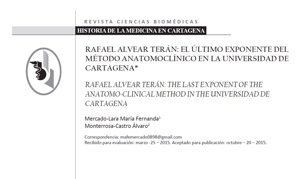 RAFAEL ALVEAR TERÁN: EL ÚLTIMO EXPONENTE DEL MÉTODO ANATOMOCLÍNICO EN LA UNIVERSIDAD DE CARTAGENA