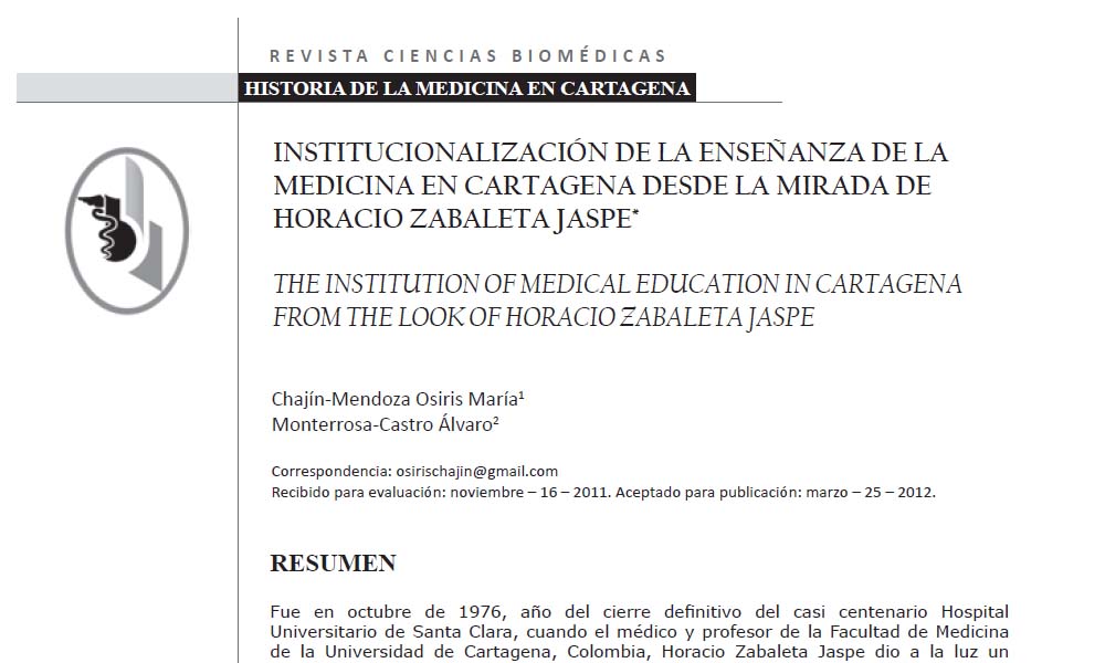 INSTITUCIONALIZACIÓN DE LA ENSEÑANZA DE LA MEDICINA EN CARTAGENA DESDE LA MIRADA DE HORACIO ZABALETA JASPE