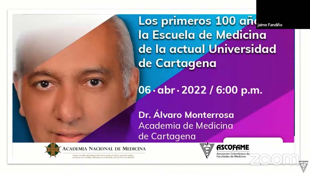 Conferencia 'Tras las huellas de Galeno': enseñanza médica en la Unicartagena a finales del siglo XX. Academia Nacional de Medicina. Bogotá